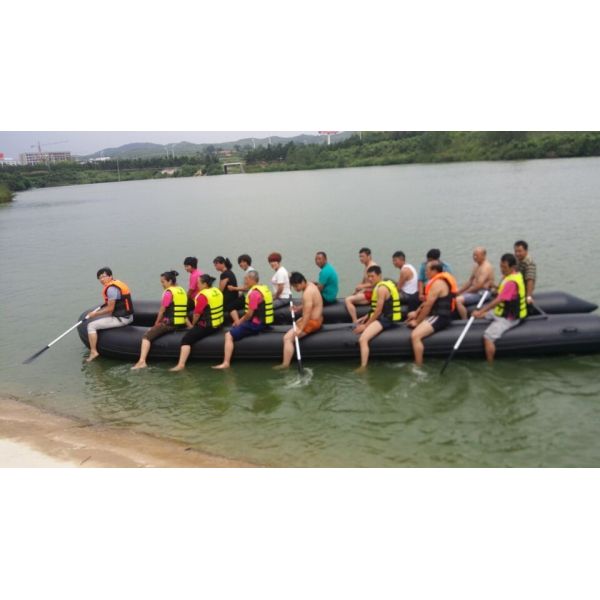 Black Hand Made 0.9mm PVC Heavy Duty Inflatable Boat 20 Person Images |
